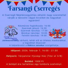 17:00-kor pedig már gyerektáncház, majd 18 órakor moldvai és 19 órától felnőtt táncház lesz a Farsangi Cserregésen de ne késlekedj! 21:00-kor az Ifjúsági Ház bezárja kapuit! 🔒