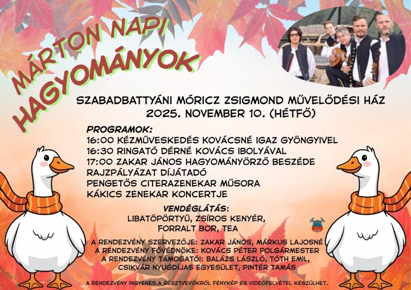 2025. november 10-én délután 17 órától Szabadbattyánban a Kákics zenekar ifjú zenészeivel a koncertünkön megidézzük Szent Márton csoda erejét a Kárpát-medence magyarságának legfényesebb zenéivel!