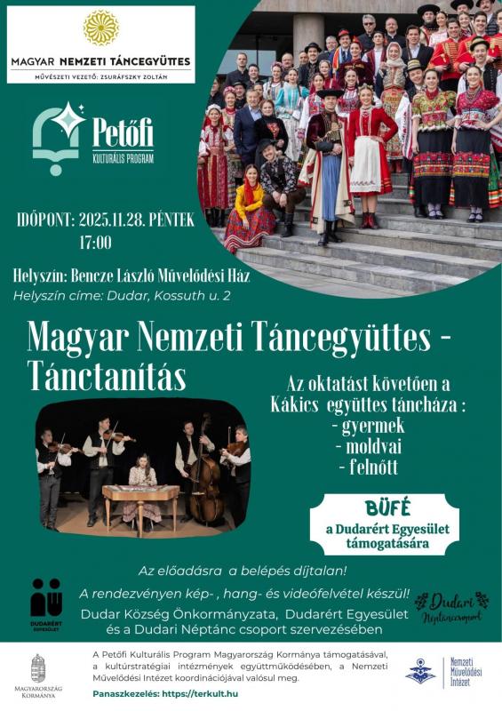 2025. november 28-án Dudarra az Öreg-Bakony szívébe utazunk el a zenekarral, ahol moldvai gyerek és felnőtt Kákics táncházat tartunk este 18 órától a híres Magyar Nemzeti Táncegyüttes táncoktatása után. 18 órától kicsiket, táncolni vágyó nagyokat, fiatalokat és felnőtteket várjuk nagy-nagy szeretettel!